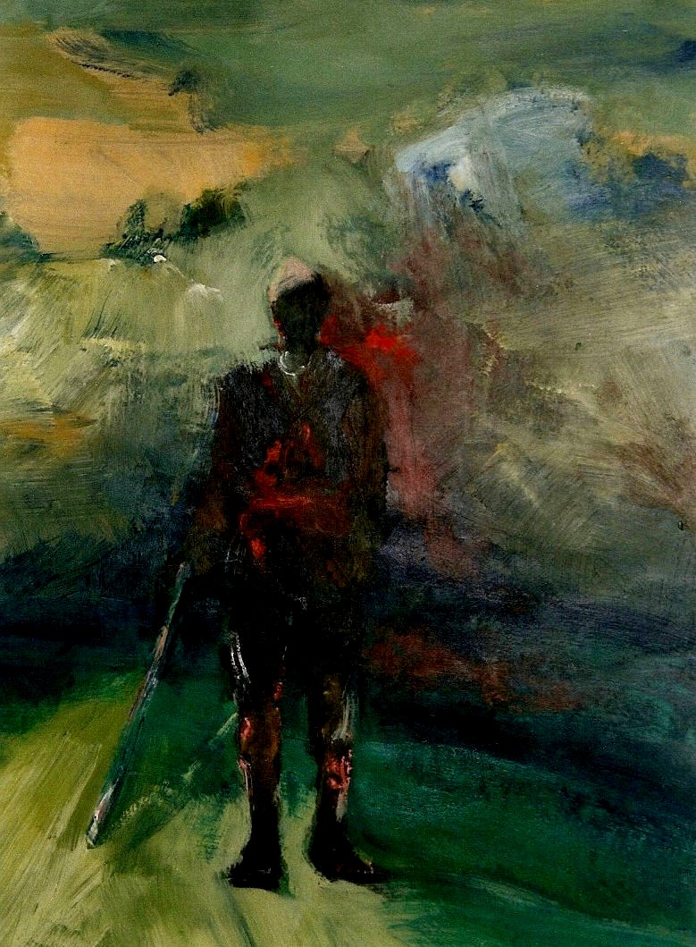 In dit diepzinnige en emotioneel geladen schilderij brengt Shefqet Avdush Emini ons een zeldzame en symbolische figuur – het portret van een geabstraheerde Albanees, een mens die de last van tijd, geschiedenis en het leven zelf op zijn schouders draagt. Dit is geen traditioneel portret, noch een eenvoudige figuratieve uitdrukking; hier wordt abstractie een middel om door te dringen tot de diepste lagen van het menselijk bestaan, om uit te drukken wat niet in woorden kan worden gevat, maar enkel in kleur, vorm en gevoel.