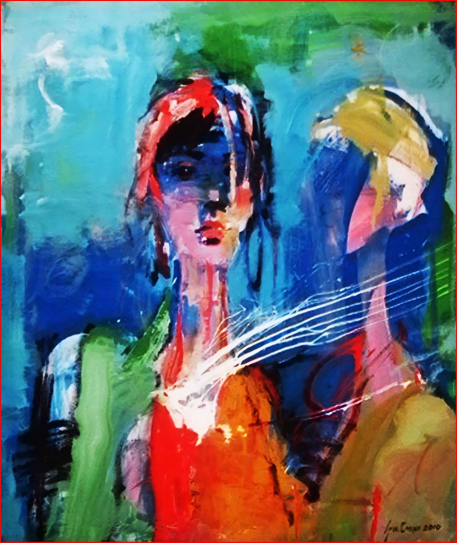 Mixing colors in a barbaric manner, shocking and hypnotizing those who observe the process, he walks across canvases, boldly pouring paint onto the future portrait of a young maiden and emerges victorious from this art-conflict, creating within chaos tender and delicate images, or frozen destinies marked by life.