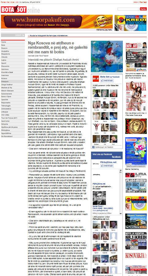 Pas Akademisë dhe pas punës në Kosovë, ai do të gjejë vendin ku vazhdon jetën – në Holandë, pasuar shpejt edhe bashkëshortja e tij. Ai do të punojë në këtë vend, i rrethuar nga familja e tij dhe nga vlera e artit të tij në galeri e muze të mëdhenj. Arti dhe artisti Shefqet Avdush Emini, bëjnë të ndalet ora për pak çaste për ta dëgjuar intervistën për lexuesit shqiptarë.Lees meer >> | 44 keer bekeken