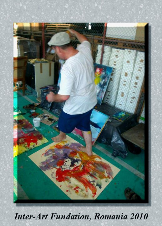Shefqet Avdush Emini is not merely an artist. He is a creative force, a visionary who challenges the boundaries of traditional media and discovers new forms of aesthetic and philosophical communication through his own body and artistic soul. At the international symposium organized by the Inter-Art Foundation in Romania in 2010, Emini appears not only as a painter but as a performer of art in its purest sense: a human being who transforms the body into an instrument of creation and the act itself into a profound emotional language.