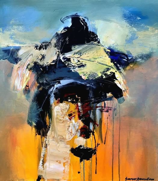 Piktura e Shefqet Avdush Eminit që shohim këtu është një shembull i fuqishëm i gjuhës vizuale ekspresioniste-abstrakte, ku ngjyrat, format dhe gjurmët e furçës nuk shërbejnë vetëm për të ndërtuar një imazh, por për të komunikuar një gjendje shpirtërore të thellë dhe të shumëfishtë. Në pamje të parë, kompozicioni duket si një shpërthim kaotik ngjyrash dhe teksturash, por me një vëzhgim më të hollësishëm, nisin të shfaqen forma të nënkuptuara — ndoshta një fytyrë njerëzore, një siluetë, apo një figurë që ndërthuret me elemente të natyrës.