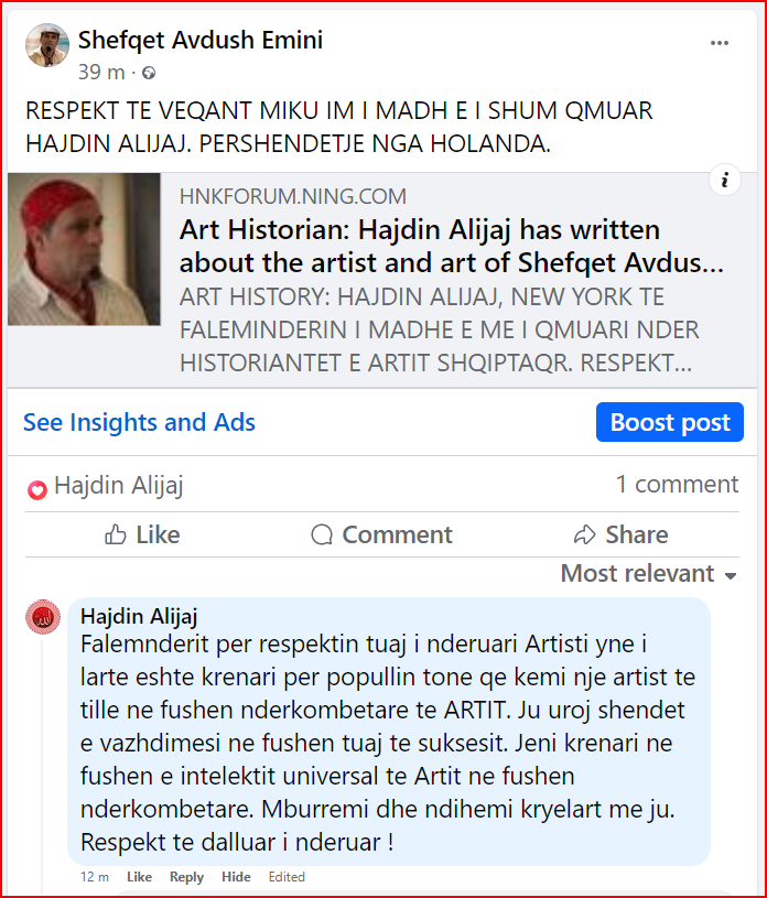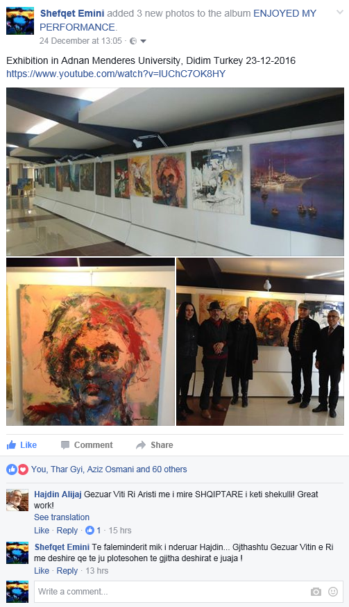 Është kënaqësi kur ka kush që i vlerëson të arriturat e mundin edhe nga shqiptarët. Ate çka arrita me ka ndihmuar se arrita me vlerë e art.