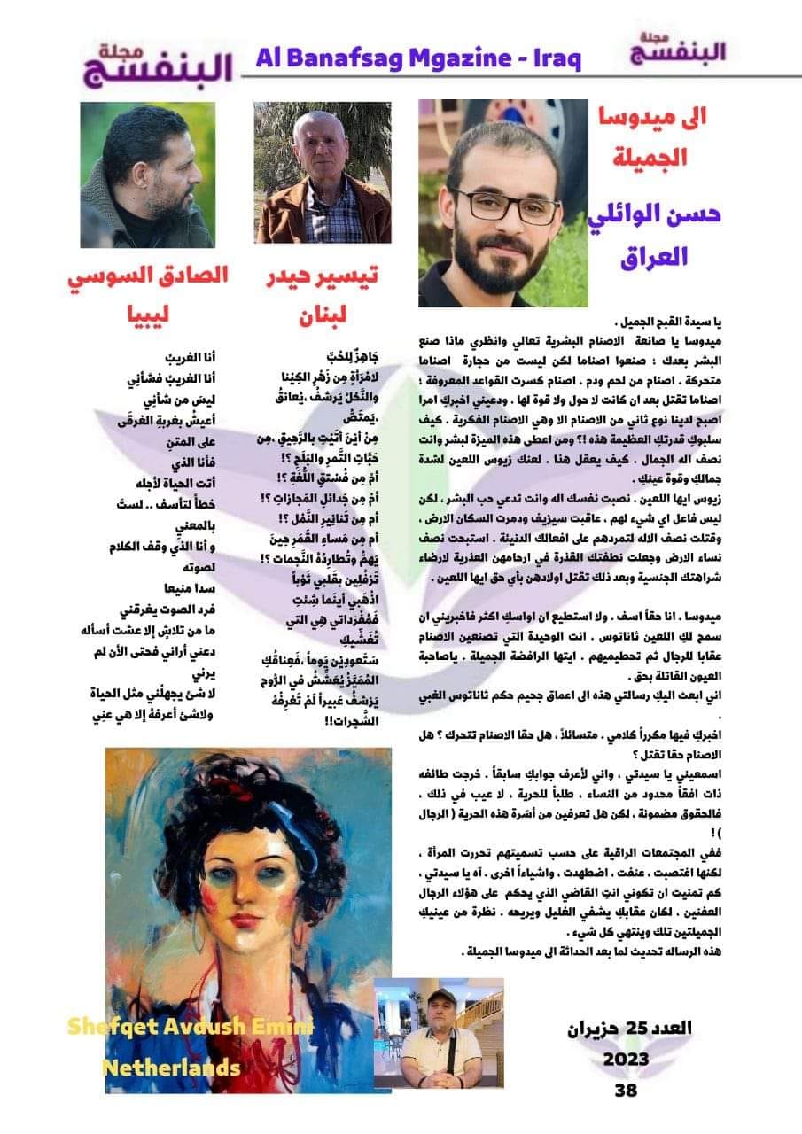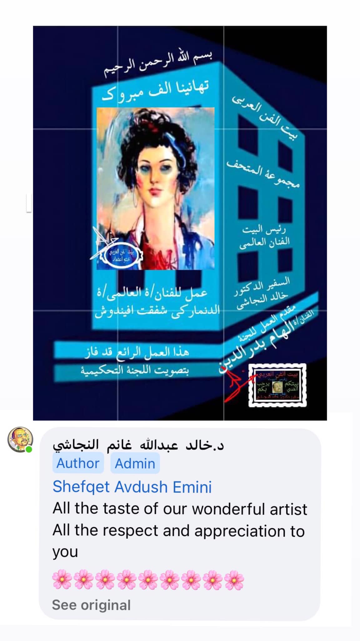 Një përshëndetje me uresë : Shëndet dhe suksese t reja, Do deshiroja që kur ke kohë , ose ndër pauzë ta lexosh shkrimtarin Japonez H. Marokamin i cili jeton në Agli . Nga të gjithë shkrimtarët që kam lexuar deri me tash H. Marokami do thoshte: Nëse ekziston xhelozia, e ekzston ajo është tek krijuesit e artit në përgjithsi, prandej im miku shkrimi im ishte kur të njëh, çmon bota të tutë shfaqin xhelozi, tjera... kujtoj së tash më me ke kuptuar sa herë që takohem me pikturat tua të puplikuara, të çmuara vlerash.